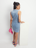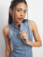 The Redbat Women's Denim Zip Up Dress is made from stretch denim for a figure-hugging fit. The maxi-length hem features a dramatic slit detail while the bustier-style top and vertical panelling accentuate curves. Redbat is exclusive to Sportscene.
