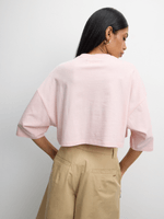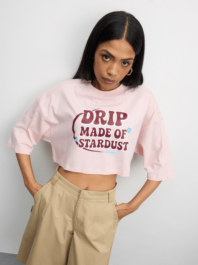 Stay trendy with the Redbat graphic tee in pink. This crop top features a dreamy angel design on soft single jersey fabric. Perfect for casual days. Enjoy the comfortable fit and cute style of this must-have tee. Ideal for any relaxed occasion.