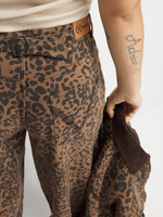 The Redbat Leopard Barrel Jeans offer a fierce and stylish addition to your wardrobe. Made from comfortable cotton fabric, these jeans feature a trendy leopard print design. Perfect for those who love to make a statement with their fashion choices. Embrace your wild side with these eye-catching jeans.