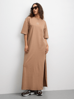 Elevate your casual wardrobe with the Redbat Classics Maxi T-Shirt Dress in a stylish light brown hue. Crafted from soft cotton fabric for ultimate comfort. This dress features RDBT embroidery for a chic touch. Perfect for effortless everyday style.