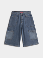 Get ready for summer with Redbat's classic medium wash jorts. Made with comfortable cotton fabric, these versatile bottoms are suitable for any casual outing. Step out in style and enjoy the convenience of these trendy jorts. Available in various sizes.
