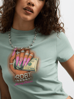 The Redbat Women’s Sage ‘Money Hand’ Graphic Baby Tee is made from soft, washed 100% cotton in a fitted baby-tee style with a crew neck and short sleeves. A graphic print across the chest completes the style. Redbat is exclusive to Sportscene.