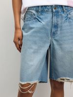 Rock a casual-cool look with Redbat's denim Bermuda shorts. Made from high-quality denim, these blue shorts feature a trendy raw hem for added style. Comfortable and versatile, these shorts are a must-have for any wardrobe. Perfect for creating effortless everyday outfits.