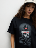 Get your hands on the Redbat women's relaxed 'Newspaper Girl' black t-shirt made of soft cotton single jersey fabric for ultimate comfort. With a casual and relaxed fit, this tee is perfect for everyday wear. Stand out in style with this trendy piece!