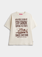 Introducing the Redbat relaxed tee in stone shade. Made with soft cotton fabric for ultimate comfort. Perfect for everyday wear, this tee is returnable and not just for kids. Embrace the laid-back style with the outlaws grind print. Ideal for any casual occasion.