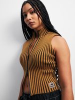 The Redbat Women's Tobacco Zip Through Sleeveless Top is made from a stretchy acrylic knit for a figure-hugging fit. This funnel neck sleeveless top has a zip-through front and a washed finish. A woven Redbat label at the hem completes the style. Redbat is exclusive to Sportscene.