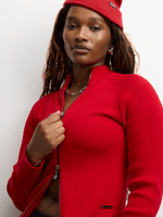 Stay cozy and stylish in our Redbat Classics women's zip red knitwear. This soft cotton knit features a two-way zip for versatility. With a relaxed fit, this knitwear is perfect for layering over any outfit. Elevate your look with this essential piece in your wardrobe.