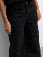 Elevate your casual wardrobe with Redbat women’s denim wide-leg jeans. Featuring frayed letter details on a classic black denim fabric, these pants offer a trendy twist to your everyday style. With a comfortable and stylish wide-leg shape, these jeans are perfect for any casual outing. Made from a durable denim and cotton blend, these jeans are not only fashionable but also easy to care for. Add a touch of edge to your look with these must-have jeans.