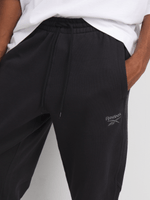 Get cozy in these Reebok Icon Elements Black Sweatpants. Made of soft cotton, they feature an ankle-length design perfect for lounging or working out. With a relaxed fit and adjustable drawstring waist, these sweatpants are a must-have for your wardrobe. Enjoy ultimate comfort in style. Supplier Code_100214075.