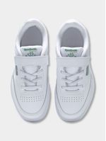 Step up your little one's style with the Reebok Toddler Club C White Sneaker. Made of synthetic fabric, these sneakers are perfect for everyday wear. They are not just for kids, but also returnable if needed. Whether for playtime or special occasions, these trendy shoes are a must-have for active little feet. Supplier style (100010358)