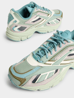 Running-inspired shoes with a futuristic design These Reebok shoes combine an archival running silhouette with a futuristic aesthetic. The synthetic and textile upper has a layered design. A TPU bridge and dual-density cushioning make these kicks look 3D and feel extra plush.(Supplier Style:100260195)