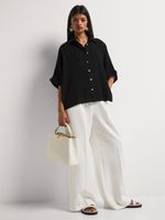 A Relaxed Fit Linen-like Shirt brings effortless style to your looks with its relaxed fit and soft drapey fabric. Wear it with wide-leg linen-like pants for a luxe co-ord set, or pair it with skinny jeans and embellished flats for a go-to weekend fit.
