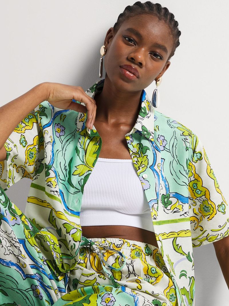 Stand out in the Relaxed Printed Faux Linen Shirt. Wear this on-trend shirt with the co-ordinating print trousers for a bold patterned set that makes a statement.
