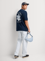 Make a bold statement with the Relay Jeans Boxy Fit Floral Navy Graphic T-Shirt. Featuring a soft fleece interior for added comfort, this tee combines streetwear edge with a touch of artistic flair. The floral graphic print stands out against the deep navy base, while the boxy fit gives it a relaxed, modern silhouette. Perfect for laid-back days when you want comfort without compromising on style.