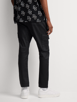 Elevate your style with Relay Jeans Black Coated Knit Utility Denim. Crafted from premium denim fabric, this tapered fit denim offers a sleek and modern look. Perfect for any occasion, this versatile denim is a must-have in your wardrobe. Don't miss out on this stylish piece!