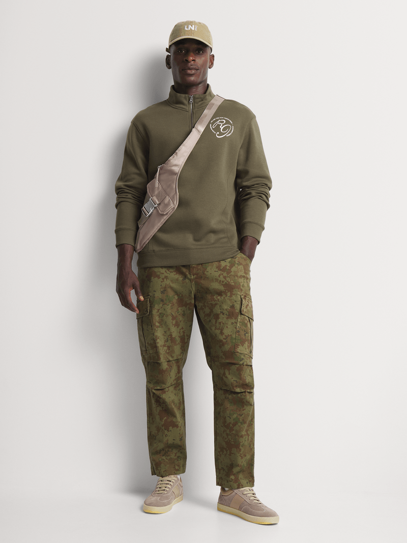 Stay effortlessly stylish and comfortable with the Relay Jeans Men's 1/4 Zipper Fatigue Graphic