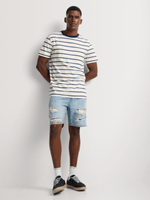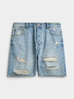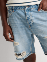 Bring a laid-back edge to your summer look with the Relay Jeans Bermuda Rip ’n Repair Light Wash Denim Short. Crafted from durable cotton denim, this style features distressed rip-and-repair detailing for a rugged, lived-in feel. The light wash finish gives it a fresh, worn-in look that pairs perfectly with casual tees or relaxed shirts. Designed with a classic five-pocket construction and a regular fit for easy comfort — made for effortless everyday wear.