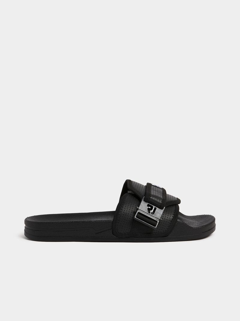 Relay Jeans Black Strap Slide is the ultimate choice for casual comfort with PVC fabrication. These slides are perfect for everyday wear, featuring a sleek design and durable material. They are easy to slip on and are suitable for various activities. Whether lounging at home or running errands, these slides will keep your feet looking stylish and feeling comfy all day long.