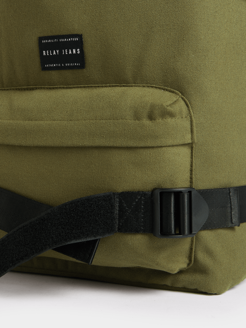 The Relay Jeans Adventure Men's Canvas Backpack blends rugged style with functionality. Crafted from 100% durable canvas, it features a front pocket with buckle closures and leather accents. Perfect for weekend getaways or daily commutes, this versatile accessory epitomizes practical fashion.