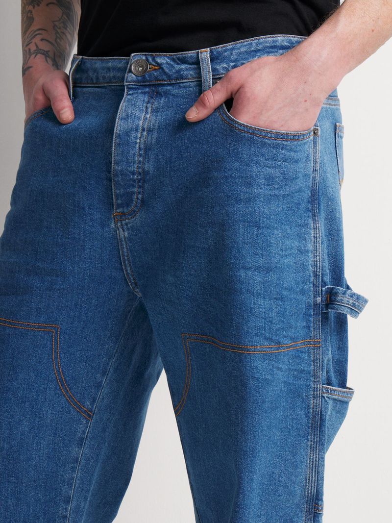 Crafted for comfort and utility, the Relay Jeans Men's Carpenter Light Blue Wash Denim brings a laid-back edge to your everyday look. Designed with a relaxed fit from hip to hem, this style offers easy movement and all-day wearability. The light blue wash delivers a worn-in, vintage vibe, while classic carpenter detailing — including functional side pockets and reinforced stitching — adds both style and practicality.