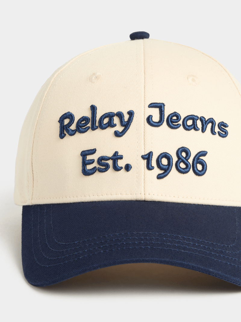 Level up your rotation with the Relay Jeans Colourblock 6 Panel Ecru Navy Cap, designed to stand out through clean contrast and confident detail. The structured six panel build keeps the fit sharp, while the ecru crown pairs effortlessly with the navy peak for a bold, balanced look. Raised front embroidery adds depth and heritage energy, with additional side detailing that sharpens the finish. Comfortable, versatile and easy to style, this cap completes your look with refined street attitude.