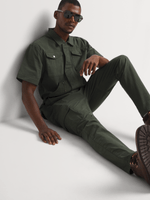 The Relay Jeans Men's Cotton Utility Overalls in fatigue deliver a rugged, functional look with a modern twist. Featuring adjustable shoulder straps and a front chest pocket with a button flap, these overall blend durability with style. Perfect for everyday wear, they offer utility and comfort.