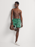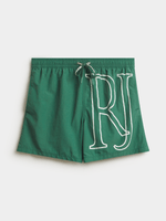 Relax by the pool in style with our Relay Jeans Enlarged Signature Green Swim Short. Made from durable nylon fabric, featuring a regular fit for all-day comfort. Perfect for your next beach day!