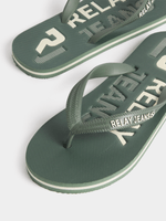 Step into comfort with Relay Jeans Men's Green Flip Flops. Crafted with 100% EVA for a lightweight feel, these flip flops feature a two-tone design, blending vibrant green with classic ecru. The textured sole ensures a secure grip, making them perfect for everyday casual wear. Ideal for any relaxed outing.