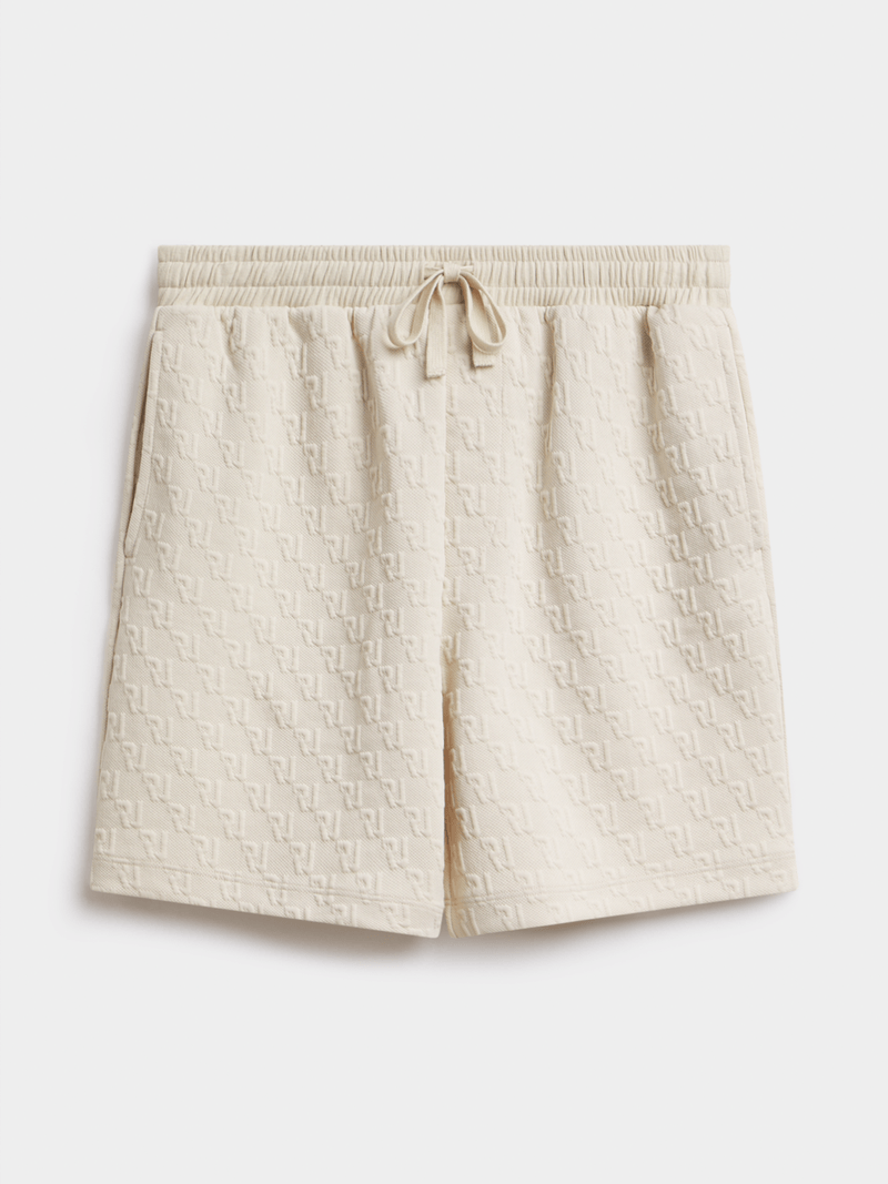 Elevate your off-duty look with the Relay Jeans Men's Jacquard Ecru Shorts. Crafted from premium jacquard fabric, these shorts offer a soft yet structured feel with a tonal textured pattern that adds subtle depth. Designed with comfort and style in mind, they feature a relaxed fit, elasticated waistband with drawcord, and side pockets for everyday ease.