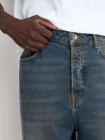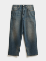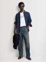 This loose-fit denim sits low on the waist with a relaxed silhouette that falls straight from top to bottom. Made from premium non-stretch fabric, it holds its shape while softening with wear — giving you structure without restriction. The dark wash keeps it grounded, versatile, and ready for everyday rotation. Keep it clean: Pair with a relaxed white tee and minimal sneakers.