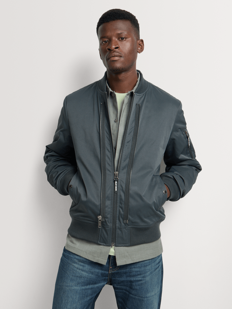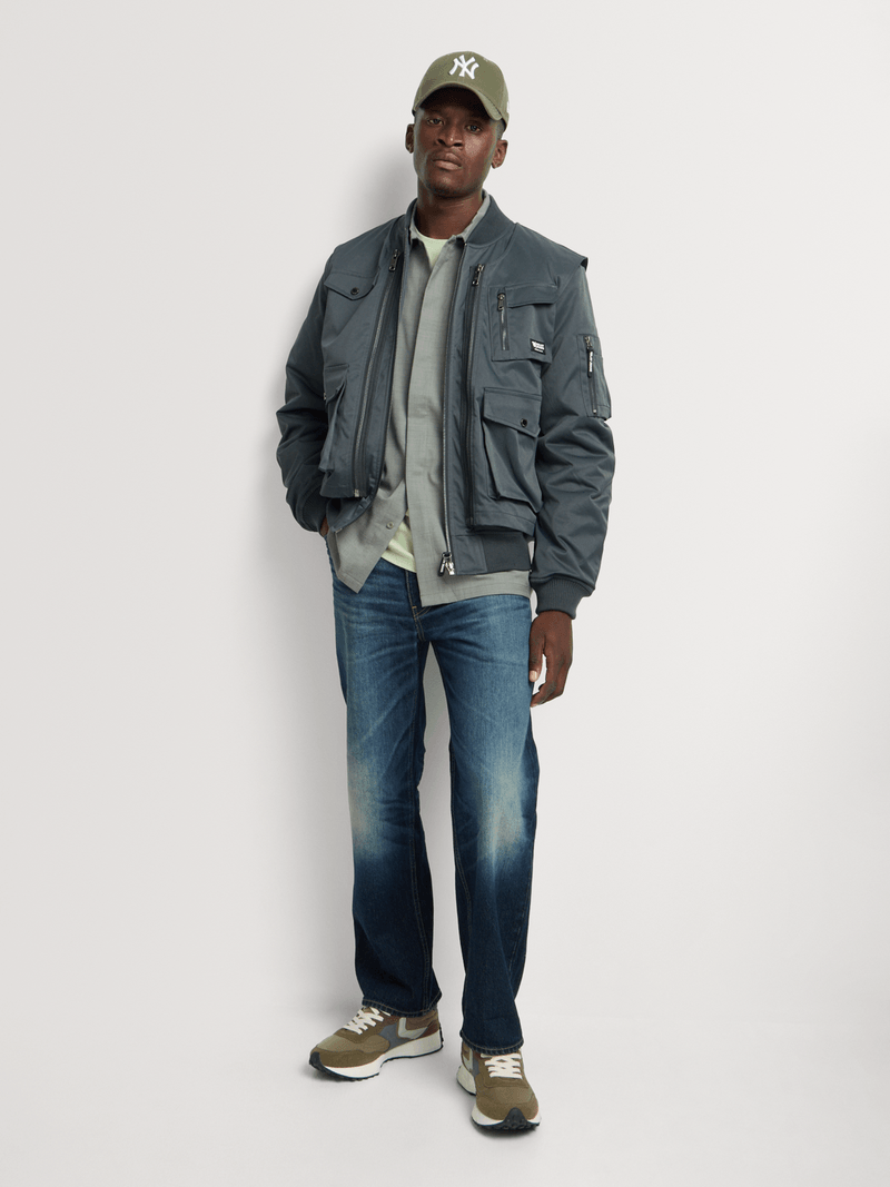 The Relay Jeans Men’s Modula Zip Grey Bomber Jacket is made to deliver structure without losing ease. Designed with a utility-inspired build, it features a full zip-through front, ribbed collar, cuffs, and hem, and multiple functional pockets across the chest and sleeves for everyday practicality. Cut for a comfortable, easy fit in a muted grey tone, this bomber balances modern street attitude with classic flight-jacket influence — made for layering, movement, and confident everyday wear.