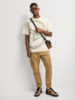 Get cozy in our oversize ecru graphic t-shirt with a sueded swoosh detail. Made of soft suede and cotton, this t-shirt is perfect for warm washes and cool ironing. Keep it stylish with the crew neck design. Embrace the oversized fit without sacrificing comfort. Ideal for those who appreciate easy-care apparel.