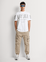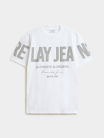 Make a statement with the Relay Jeans Men's Oversized Fit White Graphic T-Shirt. Crafted in an easy oversized silhouette, it delivers a relaxed, street-ready look with bold multi-panel graphic detailing that adds depth and personality. Soft cotton fabric ensures a comfortable feel, making it a go-to tee for everyday wear with standout energy.