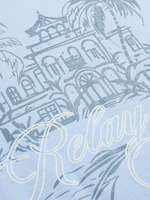 Elevate your casual style with the Relay Jeans Palm Mansion Blue Graphic T-Shirt. Made from comfortable cotton fabric, this tee features a cool crewneck design and regular fit. Easy to care for with warm wash, cool iron, and dry cleanable instructions. Perfect for a laid-back look.