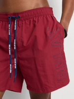 Stay stylish and comfortable in the Relay Jeans Panel Printed Swim Shorts. These dark red shorts are perfect for a cool wash, warm iron, and even dry cleaning. Made from nylon, they offer a regular fit and are perfect for your next beach adventure. With a unique panel print design, these swim shorts are sure to make a statement.