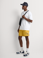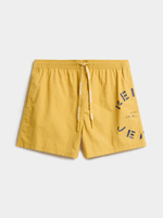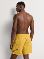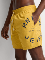 Elevate your swimwear game with Relay Jeans Plain Side Stencil Print Swimshorts in Mustard. Made from Nylon, these swimshorts feature a cool wash, warm iron, and are dry cleanable. With a regular fit, they are perfect for a day at the beach or pool. Stand out in style!