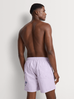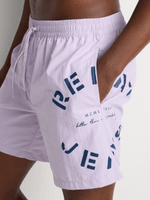 Stand out in effortless summer style with the Relay Jeans Plain Side Stencil Print Swim Short. Designed in a rich purple hue, this pair offers a clean, modern look elevated by a bold stencil print detail along the side leg.