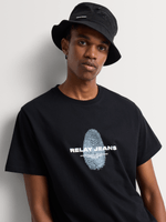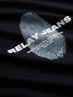 Elevate your street style with the Relay Jeans Fingerprint Graphic T-Shirt. Crafted from comfortable single jersey fabric, this tee features a sleek crewneck design. Keep it looking fresh with warm wash, cool iron, and dry clean instructions. Perfect for everyday wear with a regular fit.