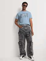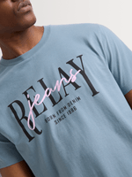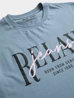 Stay comfortable and stylish in this Relay Jeans graphic t-shirt. Made from soft single jersey fabric, this tee features a crewneck design for a relaxed fit. With warm wash instructions and a cool iron option, it's easy to care for. Perfect for everyday wear, this blue tee is a must-have addition to your wardrobe.
