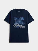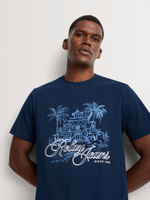 Upgrade your wardrobe with the Palm Mansion Navy Graphic T-Shirt. Crafted from soft cotton, this regular fit tee boasts a stylish crew neck and easy washing instructions. Stay comfy and stylish with this versatile piece that's perfect for everyday wear.