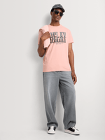 Stay stylish in this Regular Fit Graphic T-Shirt. Made from cotton knit fabric with a regular fit for all-day comfort. Features wave block lettering for a trendy look. Easy to care for with warm wash and cool iron instructions. Perfect for casual wear.