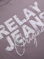 Keep your look sharp and effortless with the Relay Jeans Regular Fit Purple Graphic Tee. The soft purple base sets a fresh, modern tone, while the bold signature Relay Jeans graphic delivers authentic energy with standout street appeal. Crafted from comfortable cotton in an easy regular fit, it’s the kind of everyday essential that pairs seamlessly with denim, shorts or layered outfits.