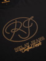 The Relay Jeans Men's Rope Circular Black Graphic T-Shirt showcases an artistic circular graphic design on the chest, blending contemporary style with classic comfort. Made from premium cotton, this regular fit tee promises breathable wear. Ideal for casual, yet stylish outings, this tee epitomizes modern apparel.