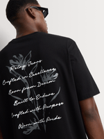 This relaxed-fit graphic piece is built for the ones who move with intention — chilled on the outside, fire on the inside. The single-jersey fabric sits soft on skin, drops clean on the body, and keeps you free to roam your city. Turn around and the back print does the talking — crafted lines, street poetry, that signature Relay grit stitched into every word.