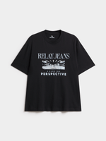 Step into effortless style with the Relay Jeans Men's Relaxed Fit Perspective Black Graphic T-Shirt. Designed with a slightly looser silhouette, this tee offers a comfortable drape and relaxed vibe that's perfect for everyday wear. The bold front graphic adds modern edge, while the soft cotton blend ensures all-day comfort. Ideal for pairing with your favorite jeans or layering under a jacket, it's a versatile staple for a street-smart look with minimal fuss.
