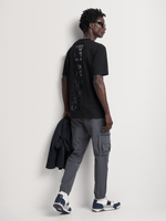 Stay casually cool in our Relay Jeans relaxed graphic t-shirt. Made from comfortable cotton fabric with a crewneck style detail. Featuring a tonal black plastisol print for a subtle, stylish look. Easy to care for with warm wash, cool iron, and dry cleanable instructions. Perfect for everyday wear.