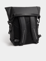 Stay organized on-the-go with the Relay Jeans Rubberised Tech Foldover Backpack in sleek black. Made with durable PU material, this backpack is perfect for everyday use. Easily wipe down with a damp cloth for easy maintenance. Designed for comfort and style, it's a must-have for your daily adventures.