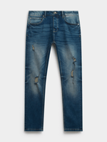 Level up your denim rotation with the Relay Jeans Skinny Rip & Repair Blue Denim. Designed to sit at a mid waist, this pair offers a tight, streamlined fit from top to bottom for a sharp, modern silhouette. The premium stretch fabric ensures all-day comfort and easy movement, while the rip-and-repair detailing adds an edge that blends classic denim attitude with a contemporary streetwear feel.