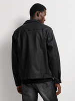 Add effortless edge to your fit checks with this Relay Jeans Slim Fit Black Coated Trucker Jacket. It's made from rigid 100% Cotton denim with a coated finish that gives it a leather-like look in a regular fit with a button-down front chest pockets.