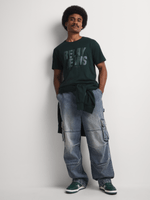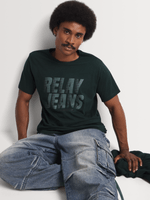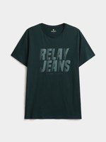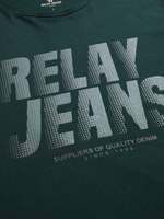 Elevate your casual wardrobe with the Relay Jeans Men's Slim Fit Matrix Forest Green T-Shirt. This stylish knit is crafted from 100% cotton single jersey fabric, offering comfort with a modern slim fit. The t-shirt features a striking geometric pattern in a cool green hue, adding a trendy edge to your outfit.